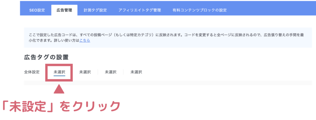 - 広告管理で一括挿入を設定し、広告の貼り替え作業を効率化する