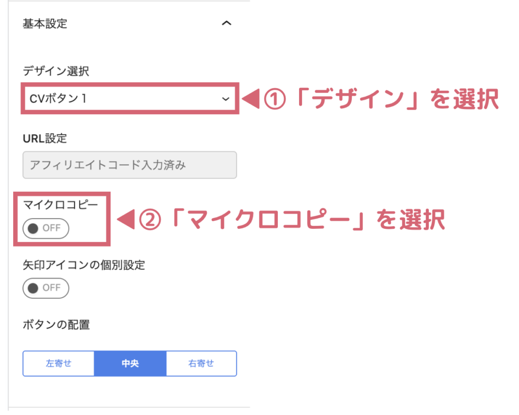 JIN:Rでは、登録したアフィリエイトタグをボタンに簡単に反映できます。
