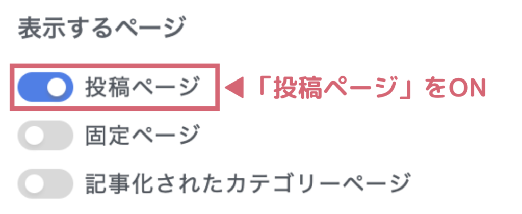 まずは 投稿ページだけにチェックを入れるのがシンプルで安心です。