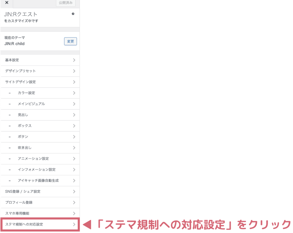 カスタマイズ内の「ステマ規制への対応設定」をクリックする。